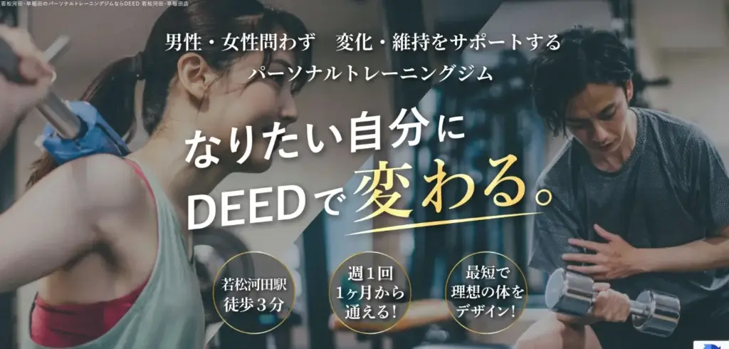 DEED 若松河田・早稲田店は、早稲田駅から徒歩圏で通える範囲にあり、マンツーマンでしっかり指導を受けたい方に向いているジムです。